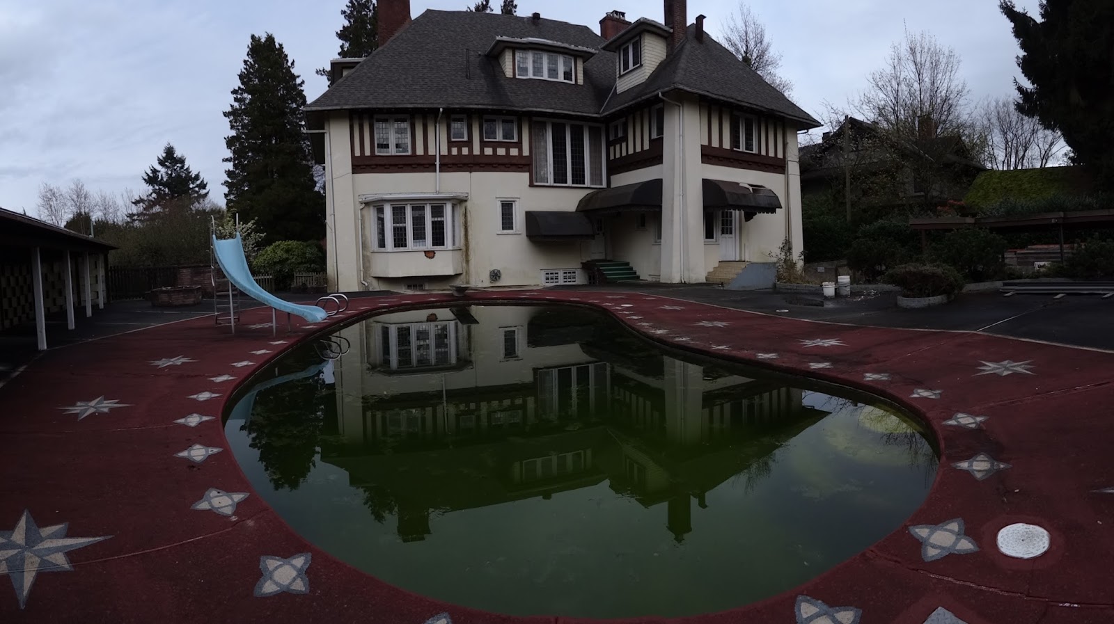 This 8,000 square foot house is listed at $13.5 million dollars, down from the original $15 million. The agent is a lovely woman named Wendy Tian, of Sutton West Coast Realty. Her number is (604)375-6030, just in case you’ve an extra twenty million or so kicking around and a fierce yearning for a to-do project. This is one of those very residences which has been empty for years. The man who bought it was originally planning to turn it into a fifteen thousand square foot home, complete with an inside/outside pool. It will stand in place of the old pool which sits there now, in view of the neighbouring Canuck Place Children’s hospice, which is simply the best neighbour a person could hope for, at least if karma has anything to do with it.