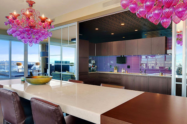 For $21 million, this lavish penthouse in Vancouver, Canada can be yours. It is part of the Fairmont Pacific Rim building, which is an upscale condominiumand hotel in downtown Vancouver. The views are absolutely marvelous, with the entire apartment boasting huge windows and glass walls that overlook the bay and the nearby mountains.